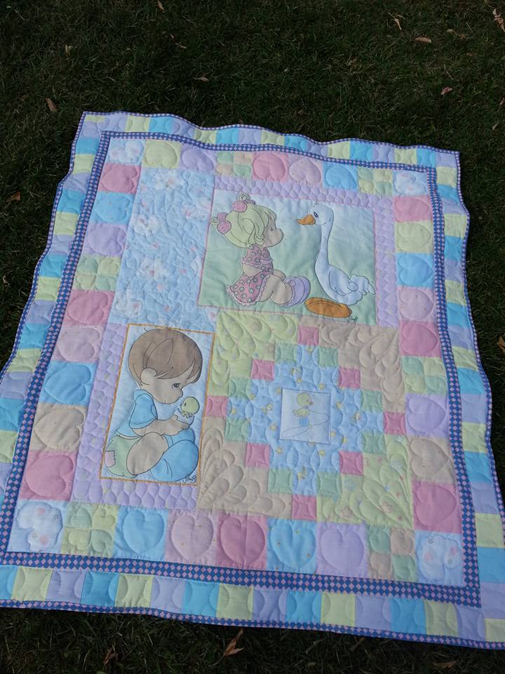 Mom used to make quilts for all her friends grandbabies.  In the last little while she has not been doing much quilting..  Last week I got a call from mom I need a favour, my friend is having a grandchild in due in October can you make me a baby quilt cause I know your fast. Sure mom I’d do anything for her as she has done so much for me my whole life. So on Friday mom gave me a panel to make a baby quilt.