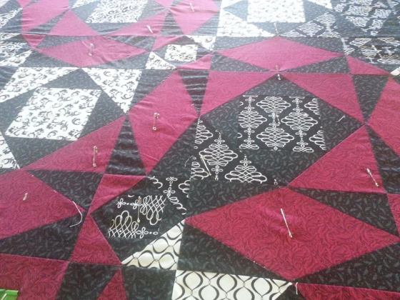 Sandwich…not food. The process of layering a quilt.