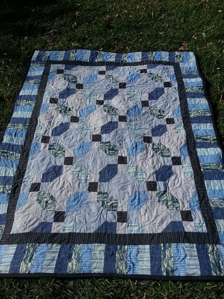 Today marks the one year anniversary of my little brothers death.. We lost him to a tragic work place accident last year. His wife was kind enough to send me some of this shirts. So I made a quilt for my aunt.