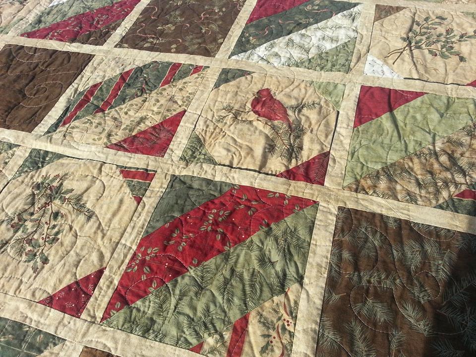 1. I could never have imagined that my love for cardinals and chickadees, the only reason I bought the panel, would result in such a fantastic quilted project, it is truly awesome, Renee.
