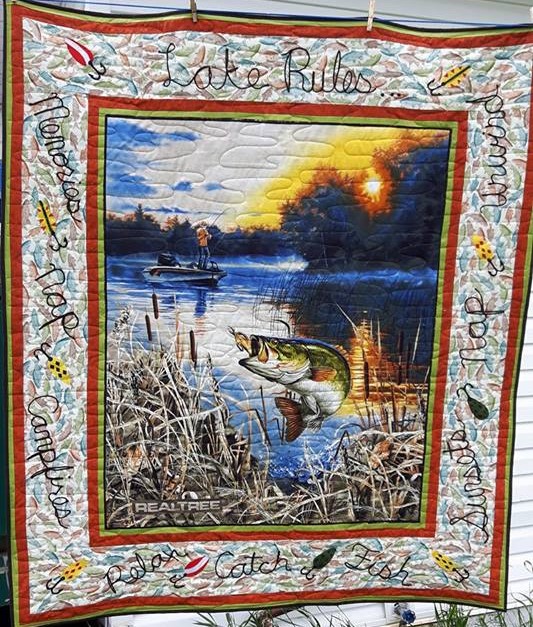 My brother in law is going to be turning 60 this year… he is an advid fisher man. Every chance he gets he is out at the lake. So what would suit him better for a gift than a Fishing lap quilt.