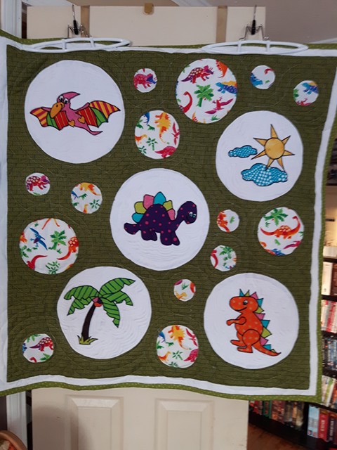 Here is a photo tutorial on how I made finished the quilt by setting in the circles.