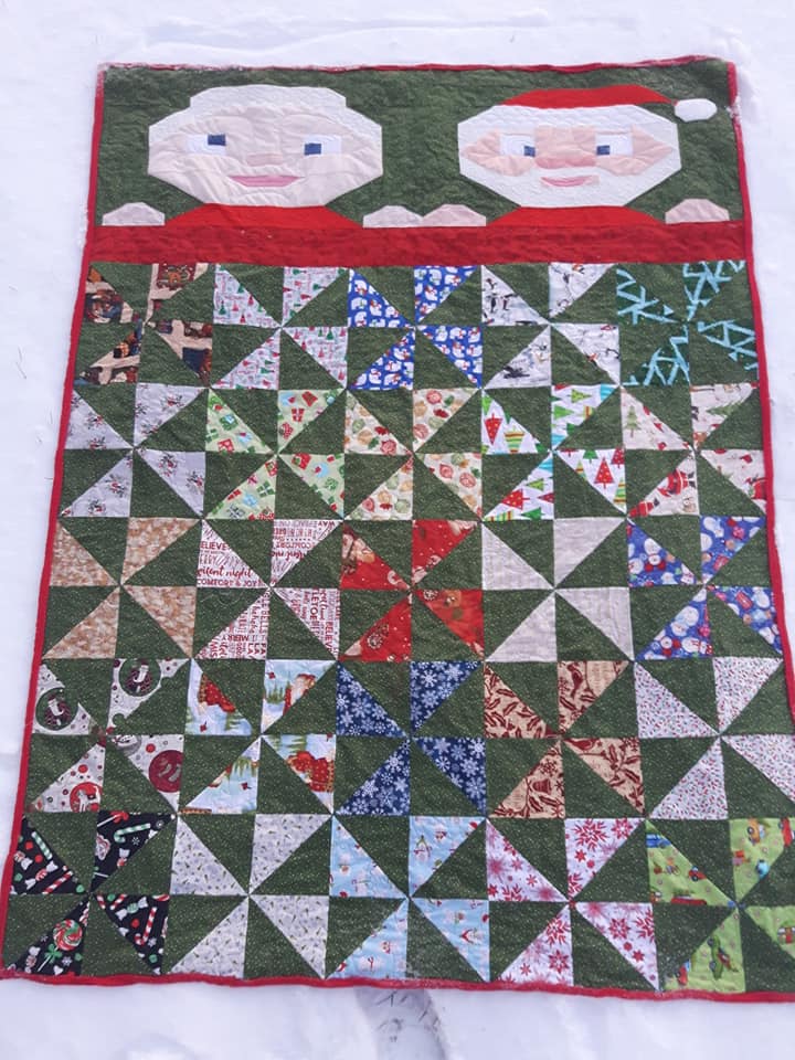 It took me over 3 hours to make Santa as each piece of his cheeks and beard are one piece.. It was made using Y and inset seams… Mrs Clause went much faster.
