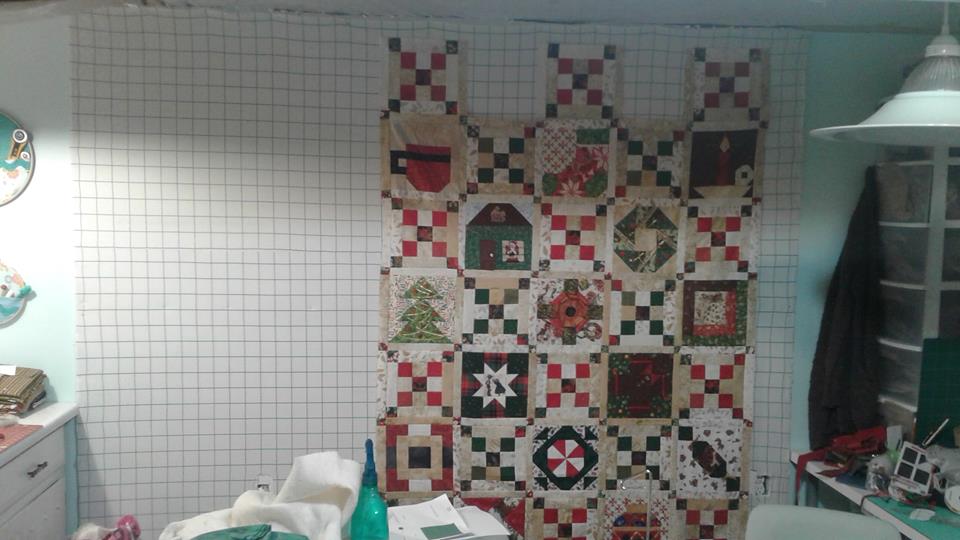 My design wall is now upgraded where I am able to put in pins to hold up assembled quilt tops.The quilt top is Pat Sloan’s Merry and Bright its a 17 week sew along.
