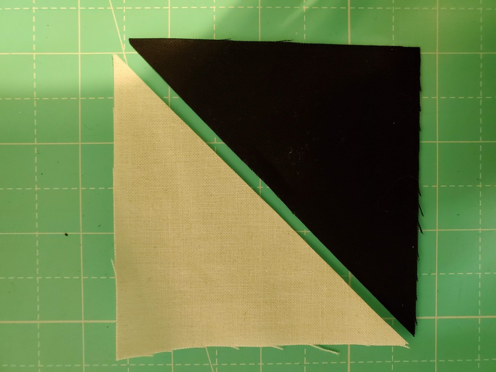 For this block I’m going to begin with the half square triangle squares in the outer edges.