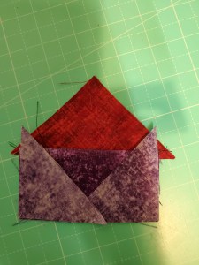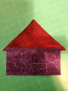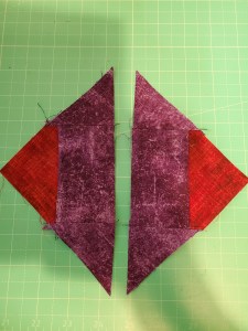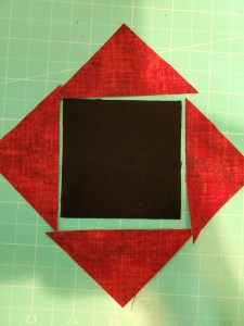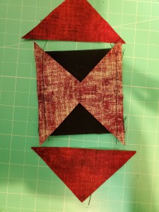 Now we’re going to sew together the corner pieces surrounding the center pieced block.