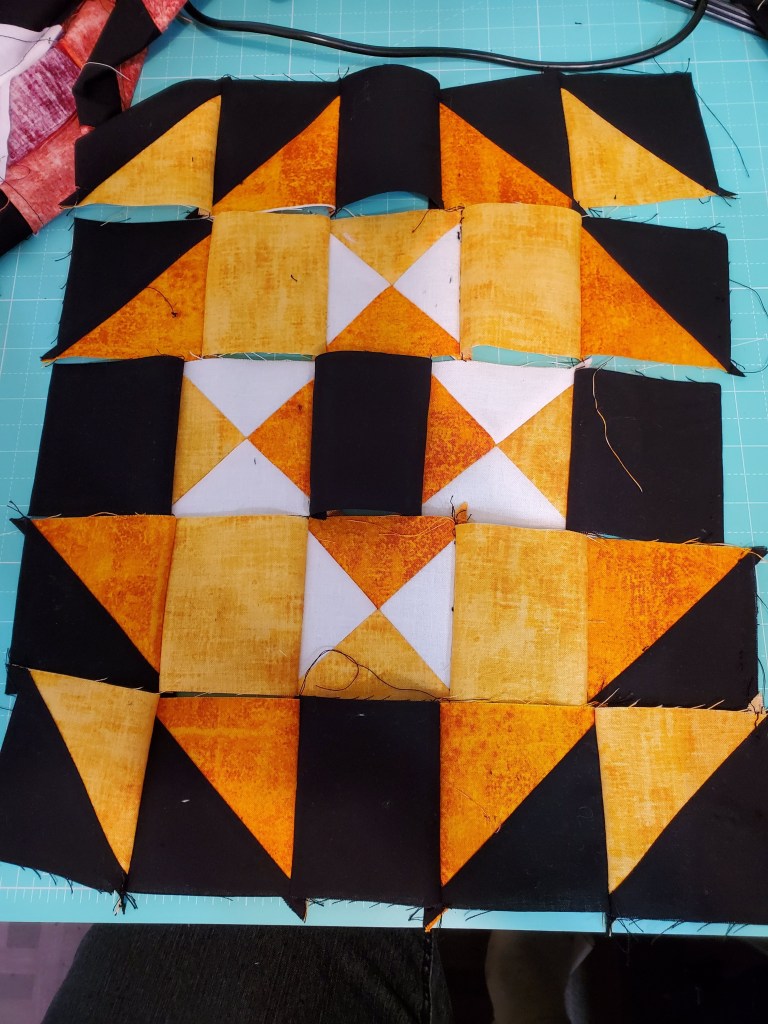 This is my second take on this block the 1st one did not have a star in it. So I’m remaking it this once can be used for a cushion later.