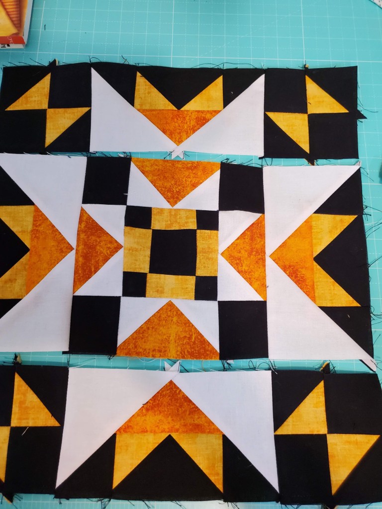 8  Black/orange HST and 8 flying geese 4 black/orange 4 white/orange