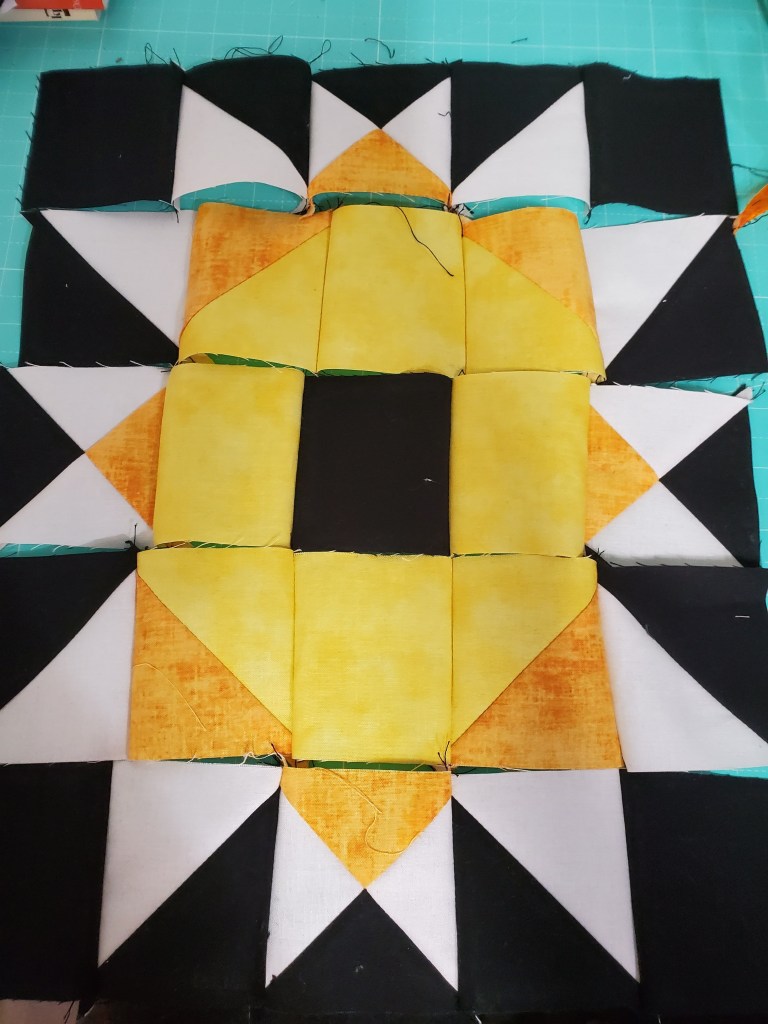 This morning I did fix my color mixup on block 20.. I dint redo it i just pulled the center out ripped out the darker pieces and exchanged them with lighter ones. Then inset the center into the rest of the block.