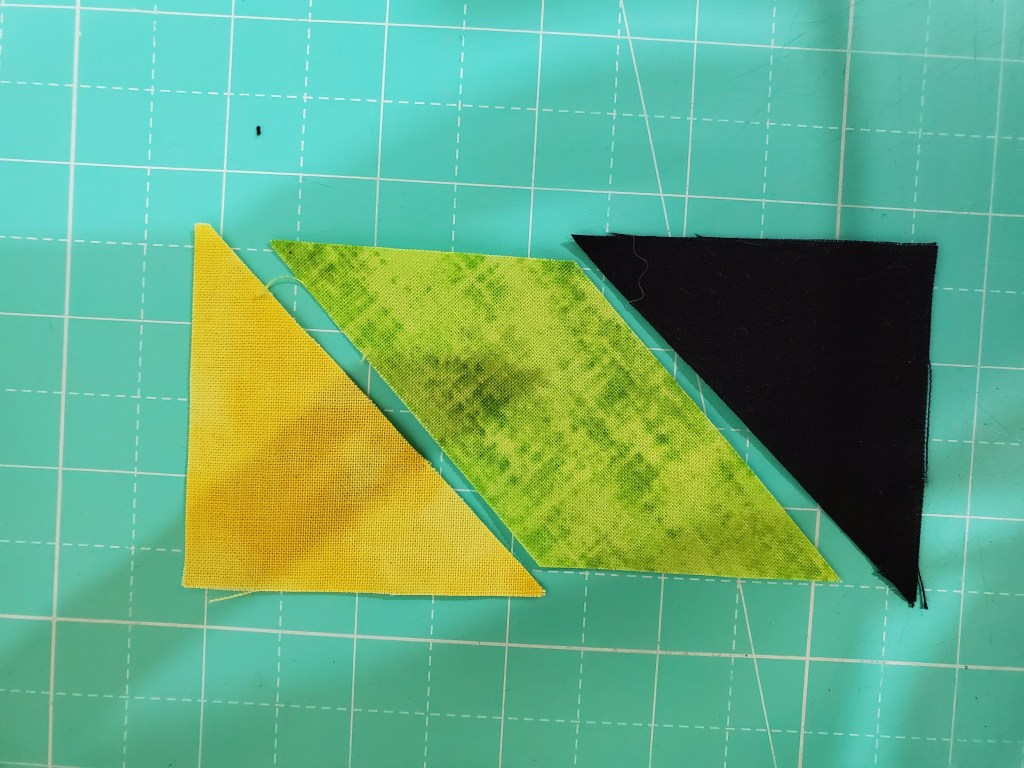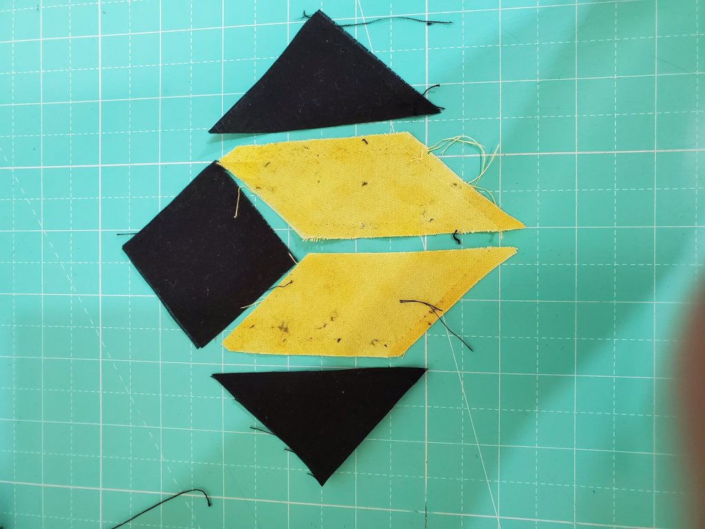 Breaking it down.. since the triangles between the trapezoids are cut into 2 instead of one like the previous blocks we can assemble it abit different. Here are the sections