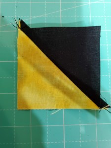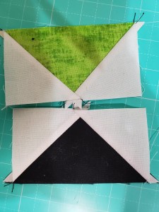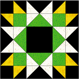 This block has 8 yellow/black HST. Four of each Black/White and Green/White flying geese.
