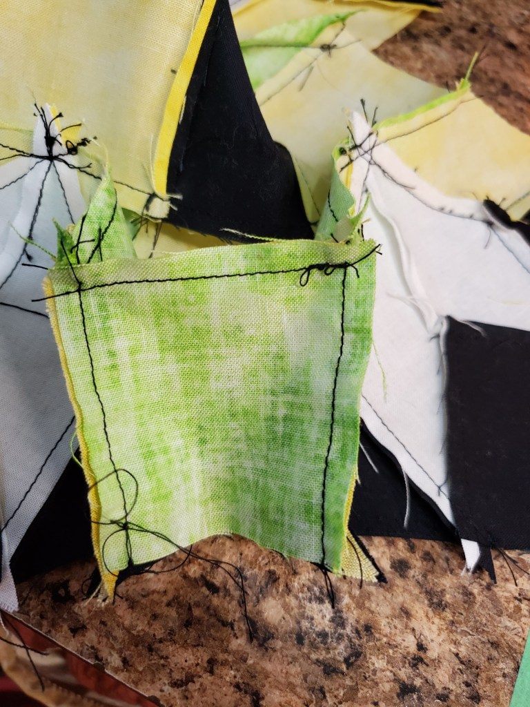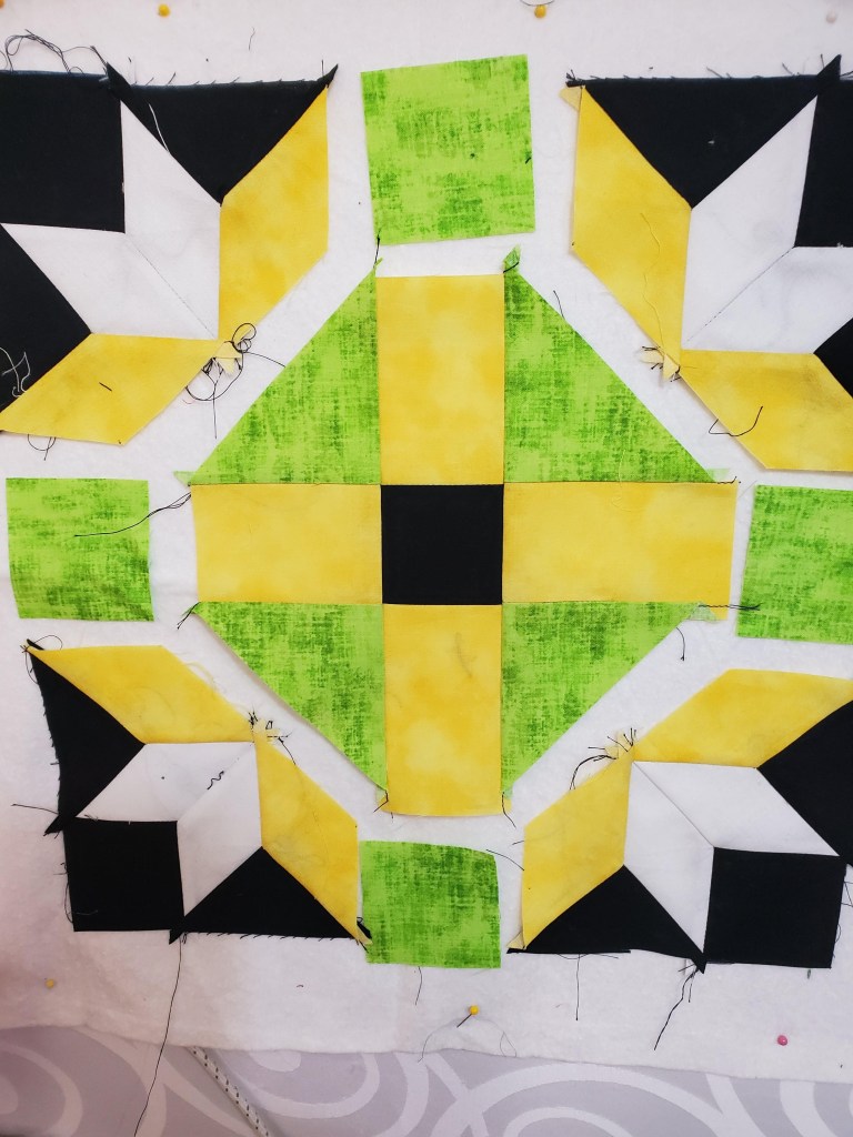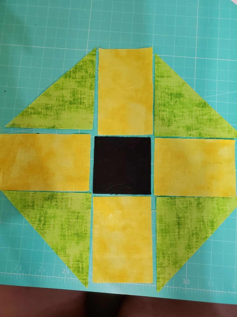 I tried someting different with this one I sewed the corners sections in 1st then added the green patch