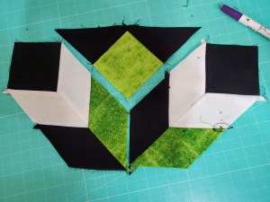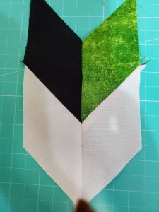 sew two of section 1 making sure to leave the 1/4″ at the V