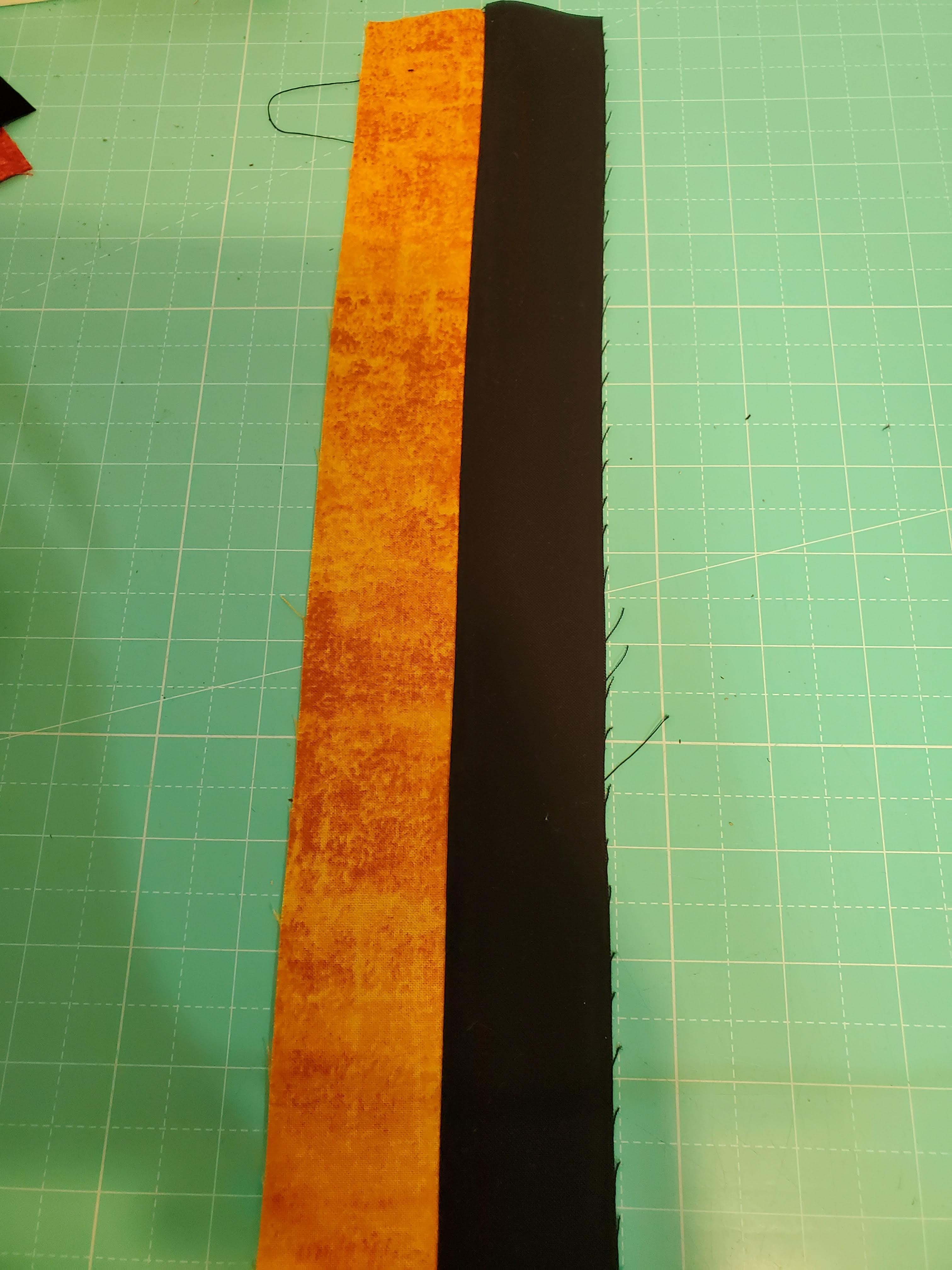20190708_103256 July 8, 2019Full resolution (3024 × 4032) The 2 strips sewn together and pressed to the black.