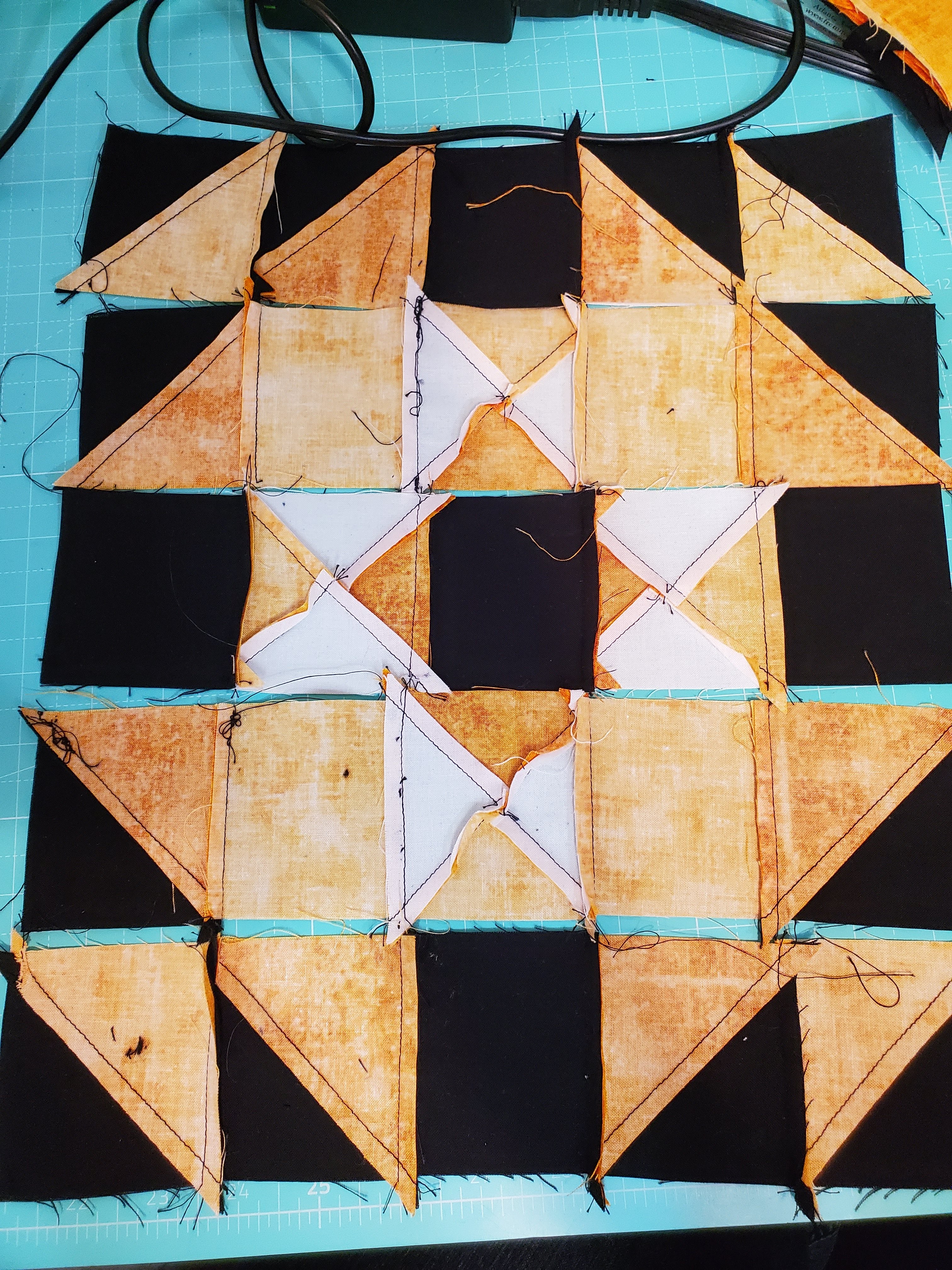20190712_130655 July 12, 2019Full resolution (3024 × 4032) This shows teh pressing so that when sewing these together they but up nicely to have nice seam matches and points.
