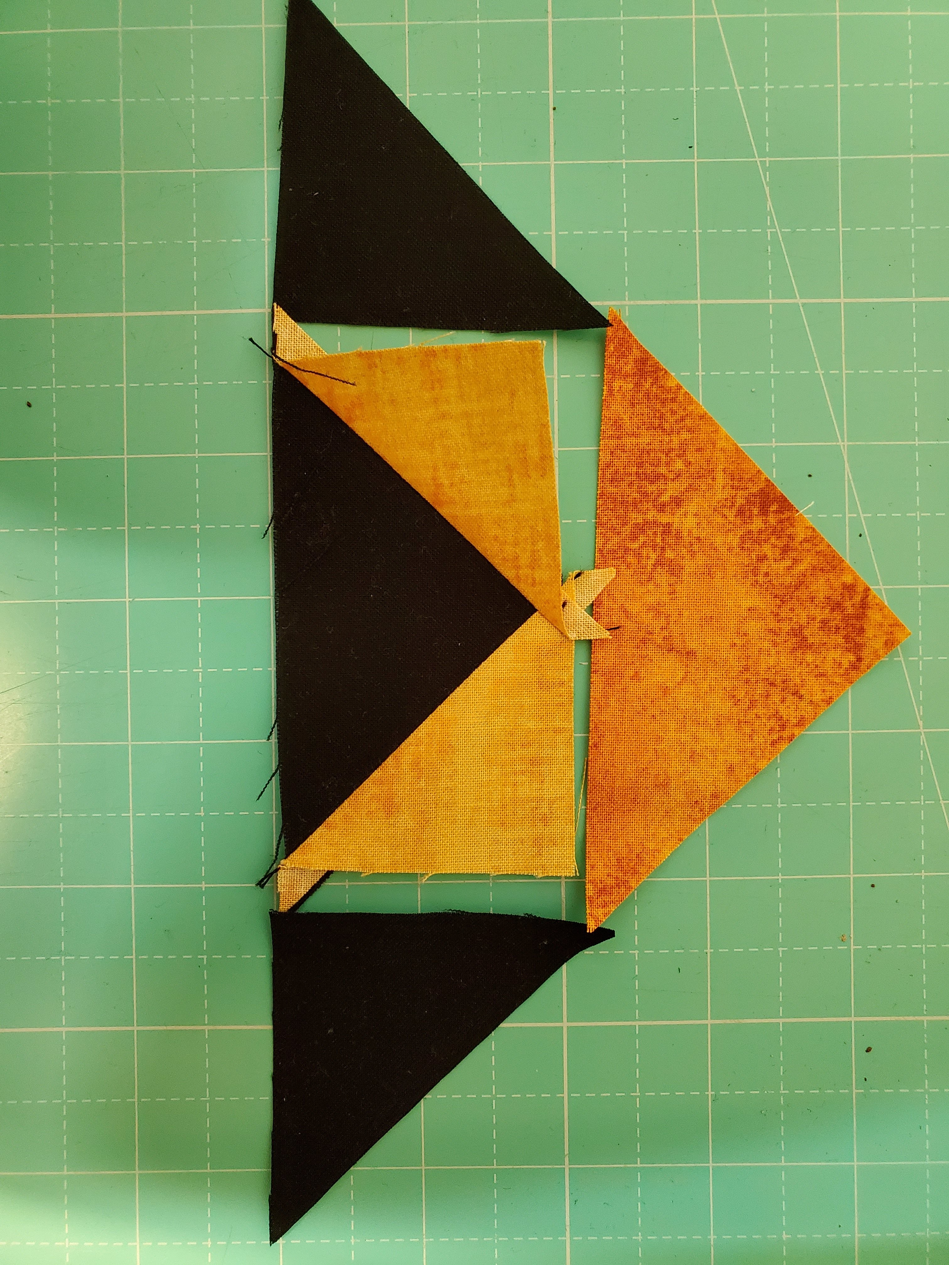 20190716_092608 July 16, 2019Full resolution (3024 × 4032) Sew the black triangle patches to black/yellow geese
