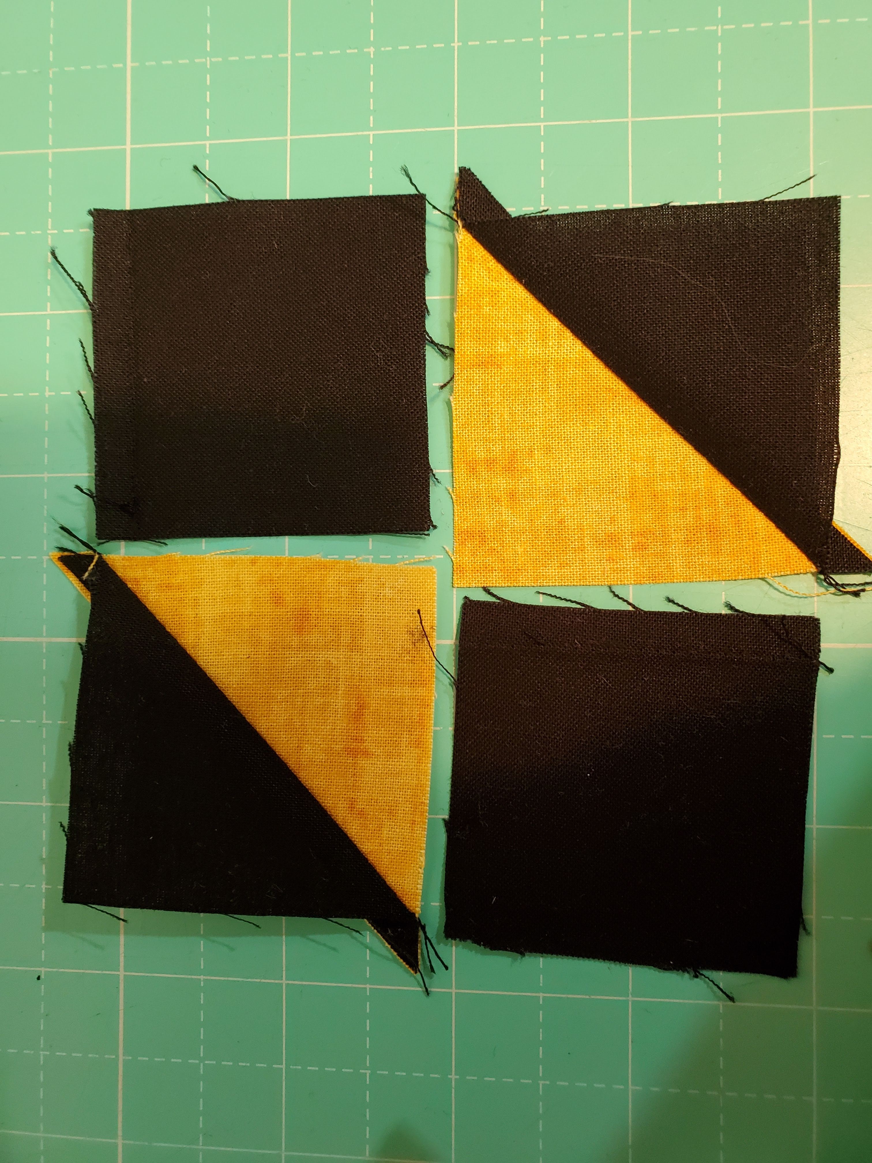 20190716_095113 July 16, 2019Full resolution (3024 × 4032) Sew black square to all black/ornge hst press to black patch