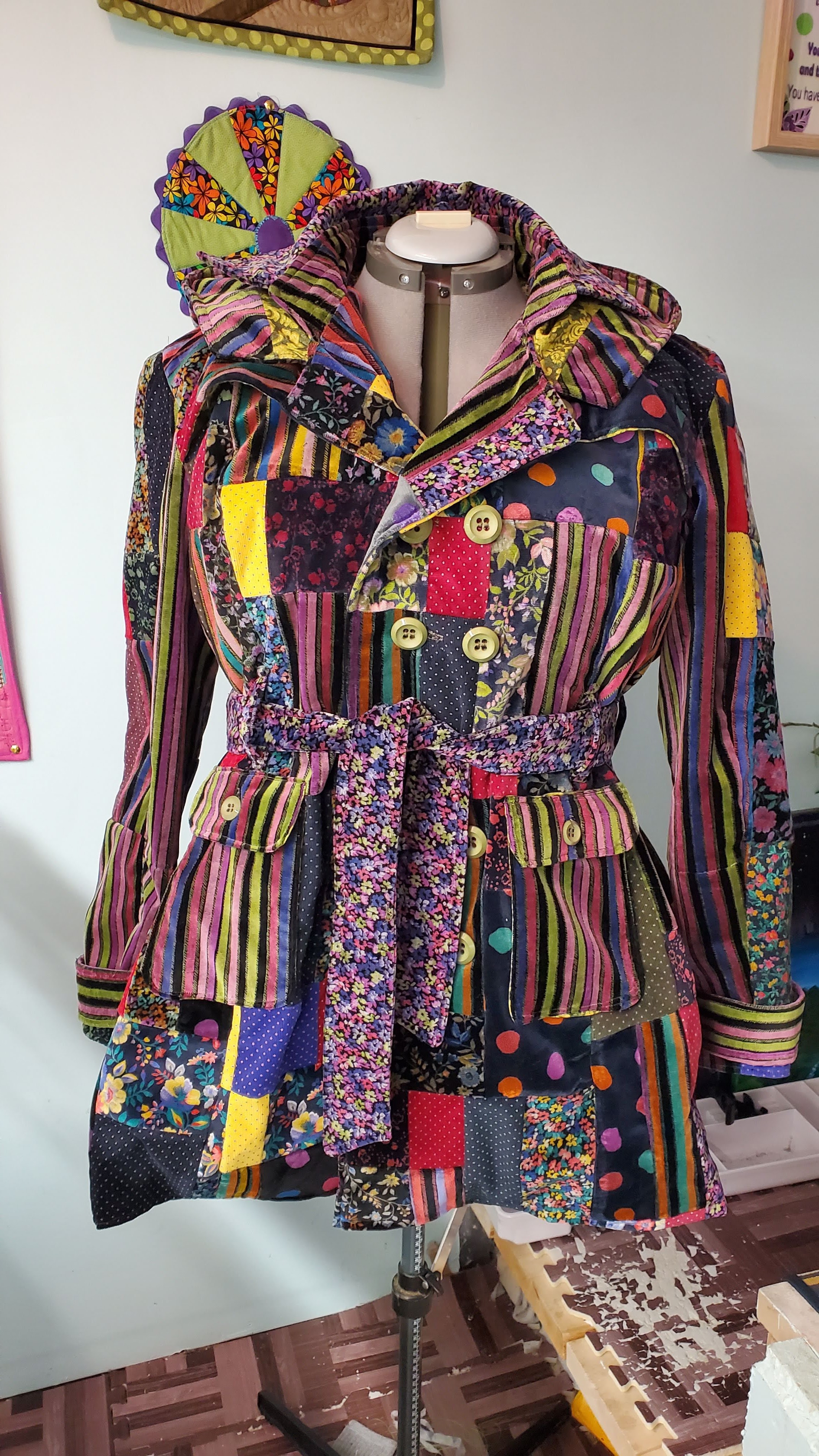 The jacket is my 20 items 20 years challenge.. i chose to make this trench coat it incorporates 20 buttons.. I got the pattern from Taylor Trench coat it was a sew along on a FB group. This was the last item i completed for this show on March 12.